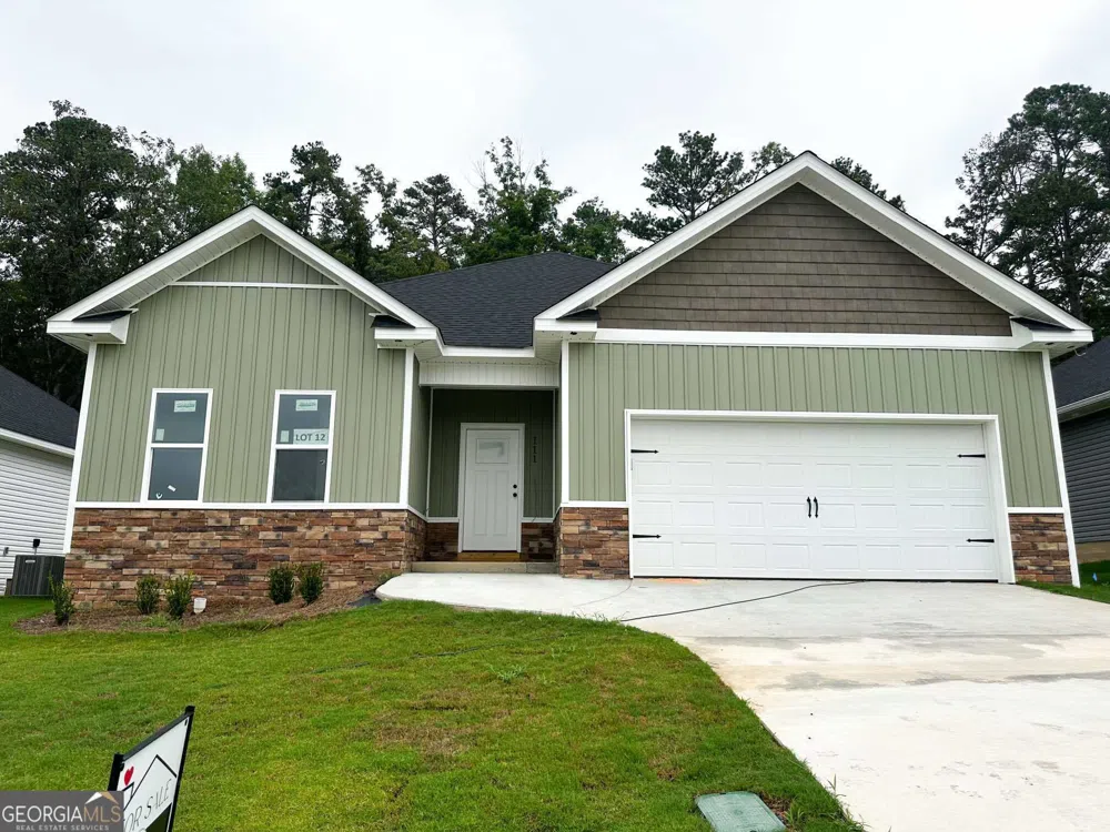 Welcome to Cottages of Blue Ridge! This recently built, single-level home, situated on Garrett Lane, offers three bedrooms, two bathrooms, and a privacy fence, complete with all the amenities you expect from new construction. Luxury Vinyl Plank flooring graces the main living areas and primary bedroom. The open floor plan features a spacious living area with a stunning coffered ceiling and an electric fireplace with a wood mantle. The kitchen boasts shaker cabinets, a large island with breakfast bar, granite countertops, stainless steel appliances, tile backsplash, and a farmhouse sink. The primary bedroom features a decorative box tray ceiling and a bathroom with a striking tile shower with a frameless glass shower door and a freestanding tub. Additionally, the main living space leads to a covered patio, ideal for entertaining. The tranquil, tree-lined, fenced backyard is an oasis of calm. The property is zoned for Bonaire Elementary, Bonaire Middle, and Veterans High School. The house is conveniently located minutes from ROBINS AFB and close to all your shopping needs on Hwy 96. Schedule your showing appointment now!